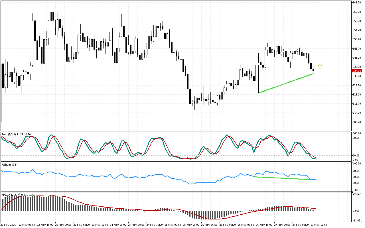 Цена није успела да достигне нови минимум, док је индикатор RSI показује узлазни тренд. Добијена обрнута дивергенција може сигнализирати потенцијални…