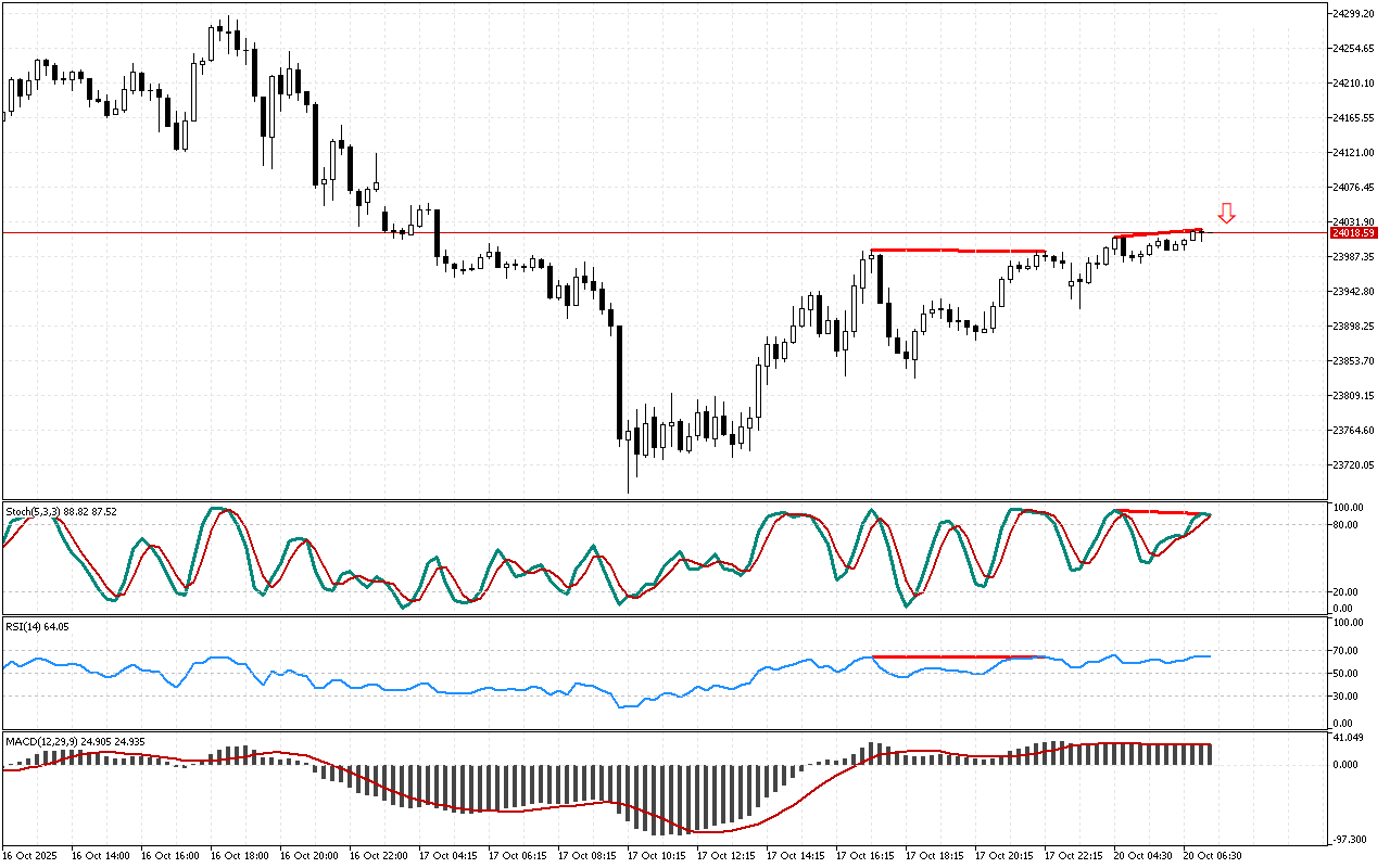 DAX 40 M15: После RSI постоји и силазна дивергенција на Stochastic