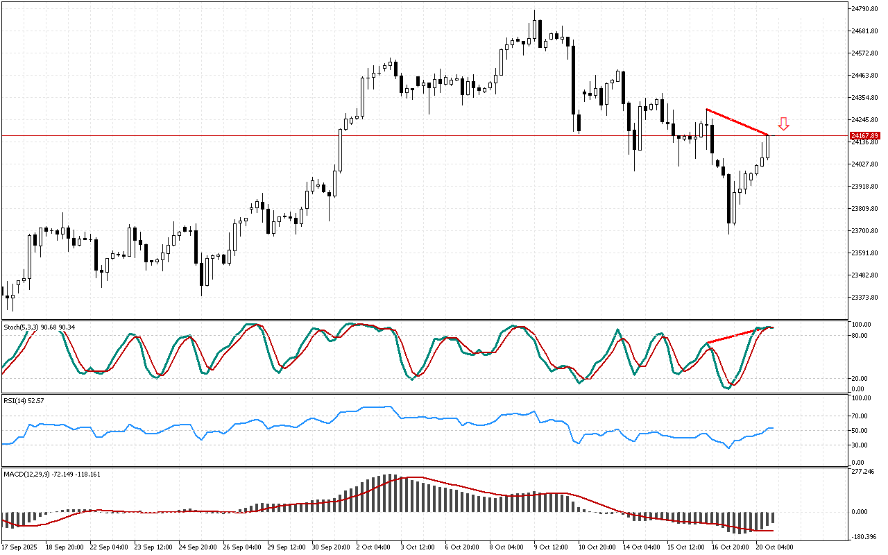 DAX 40 H1: После RSI постоји и силазна дивергенција на Stochastic