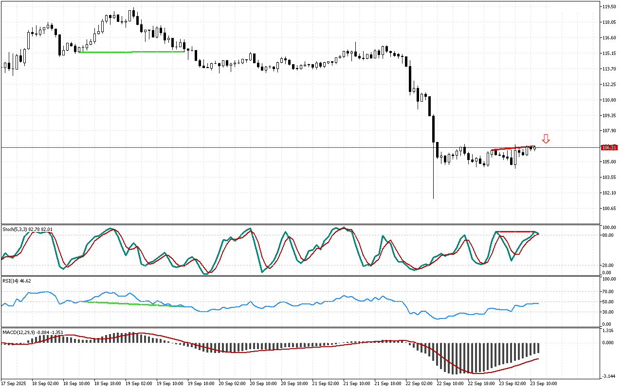 Цена није успела да формира нови максимум, док је индикатор Stochastic се одржава изнад нивоа 20. Ова дивергенција, означена црвеном…
