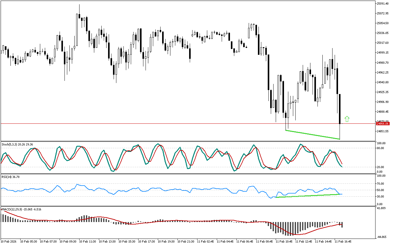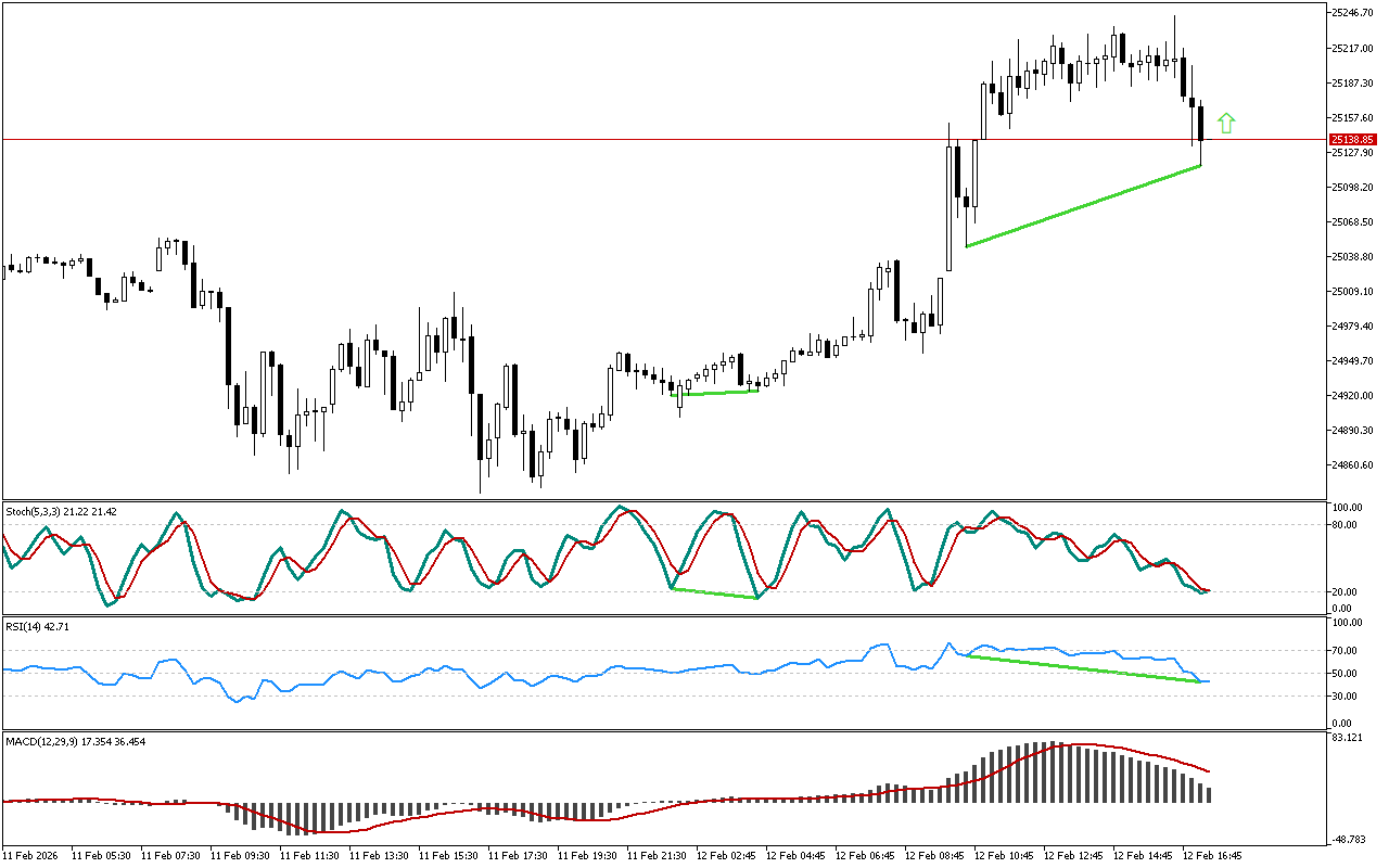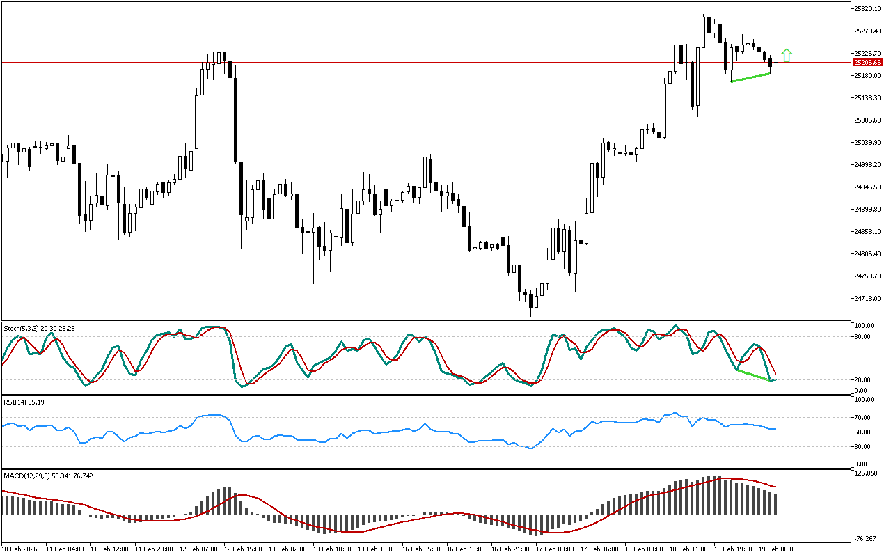 DAX 40 одржава узлазни смер кретања, док Stochastic пао испод 20. Добијена обрнута дивергенција је означена зеленом линијом на графикону.RSI…