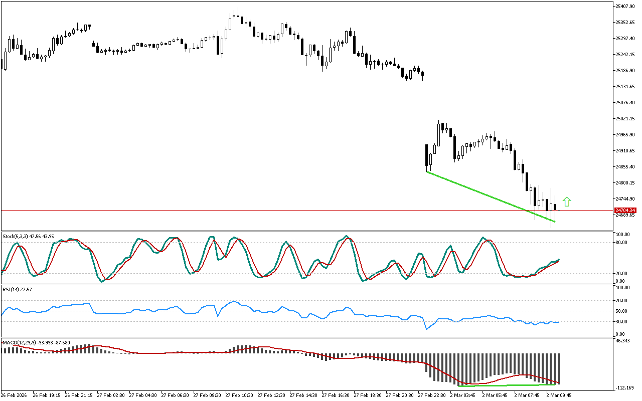 Између графикона цена и индикатора RSI формира се класична дивергенција, означена зеленом линијом. Цена DAX 40 је ажурирао локални минимум,…