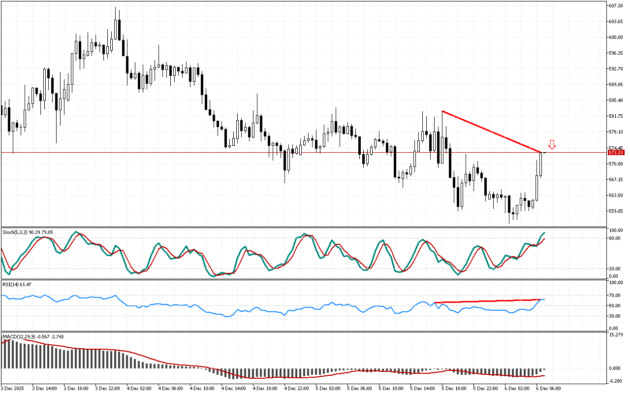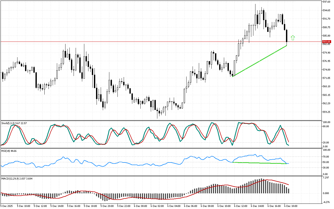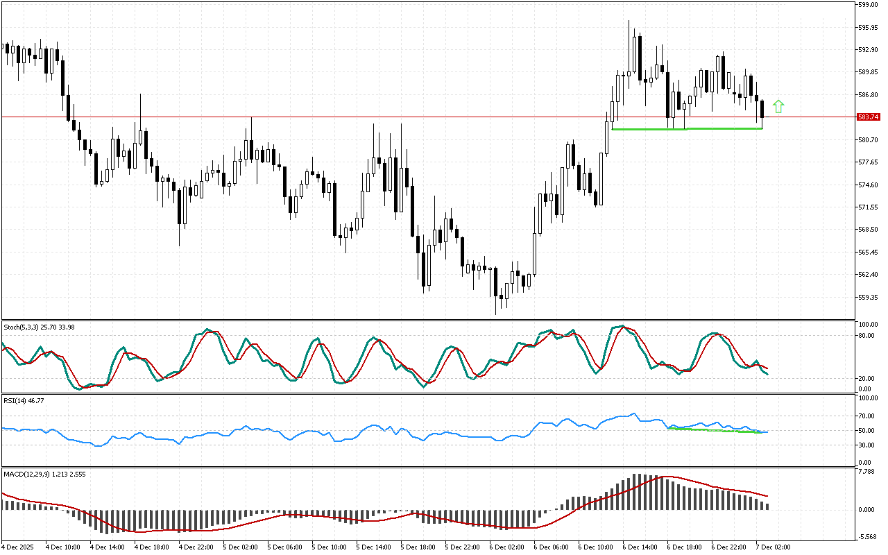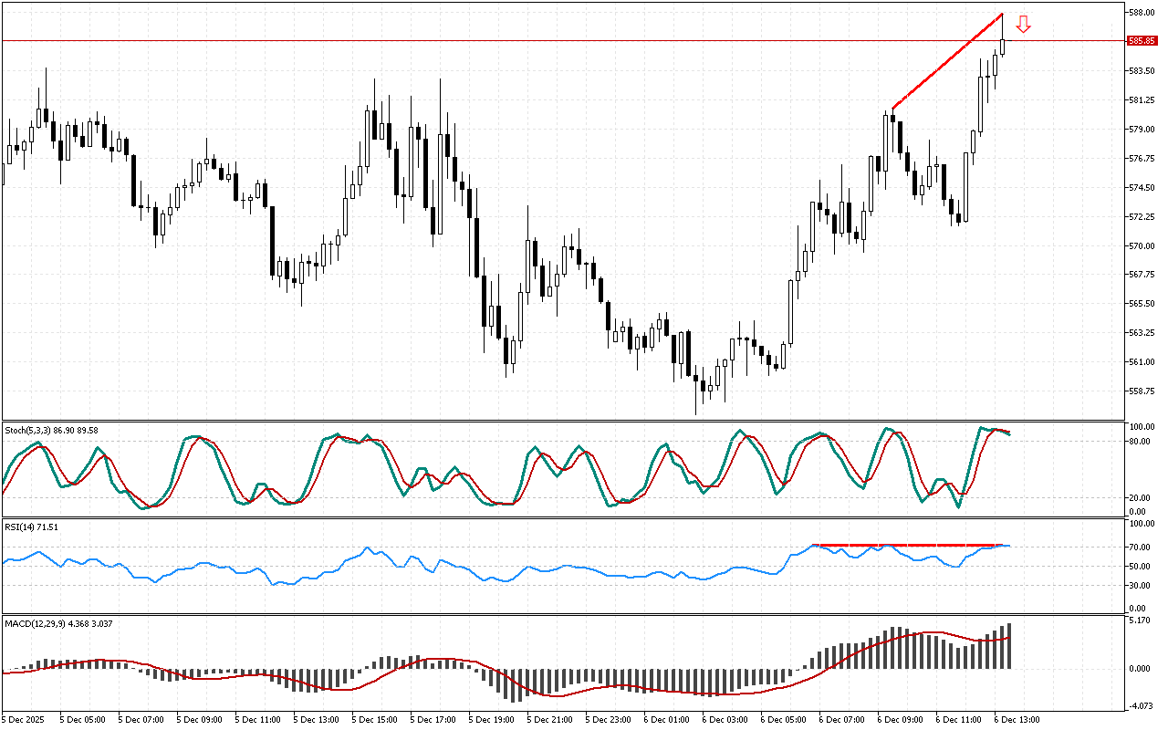 El oscilador RSI detecta una discrepancia. El precio no logró alcanzar un nuevo pico, mientras que el indicador RSI subió por encima del máximo intradiario anterior, lo que indica un posible cambio en la dinámica del movimiento del precio.