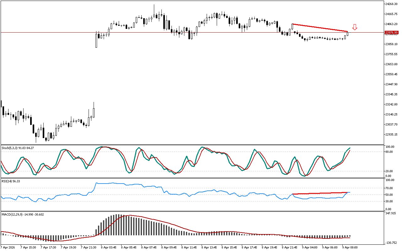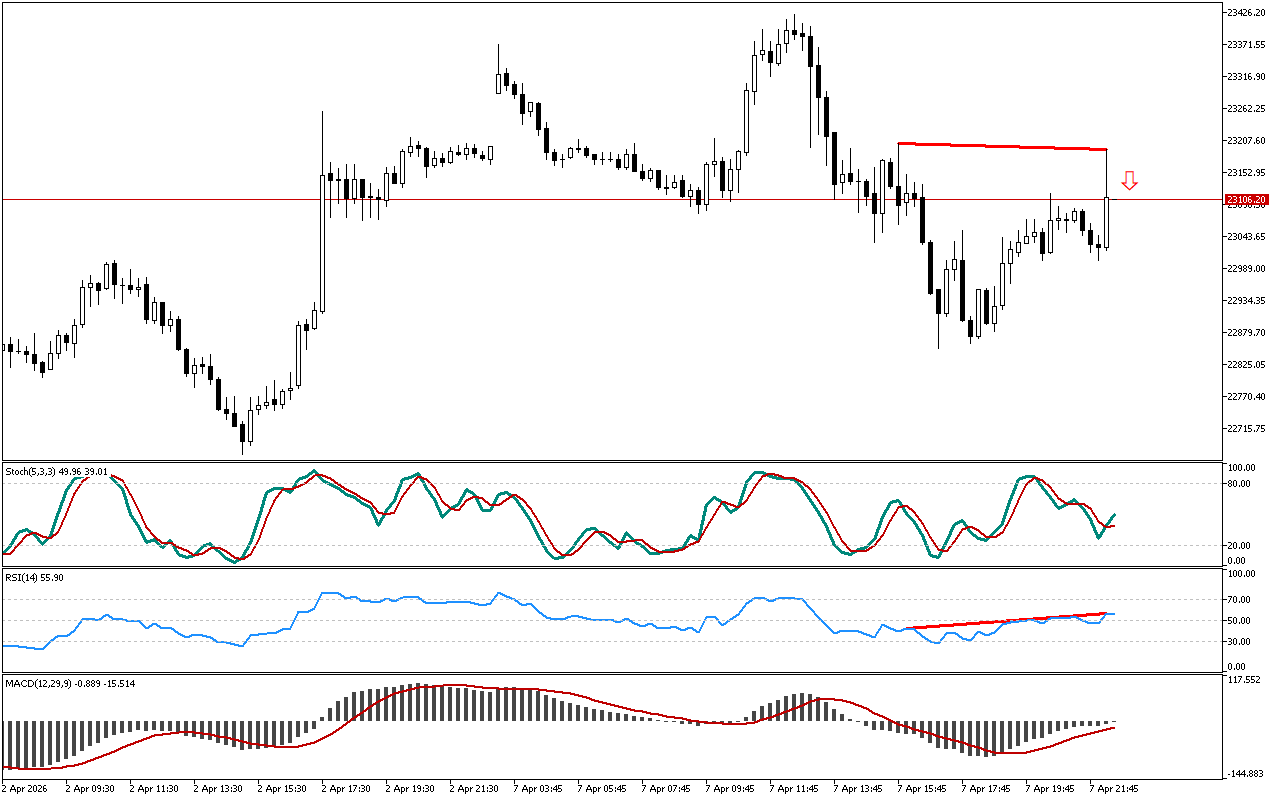 En klassisk divergens markeret med en grøn linje er blevet dannet mellem prisdiagrammet og RSI -indikatoren. DAX 40 -prisen har opdateret sit lokale lavpunkt, mens indikatoren forbliver over 30-mærket.