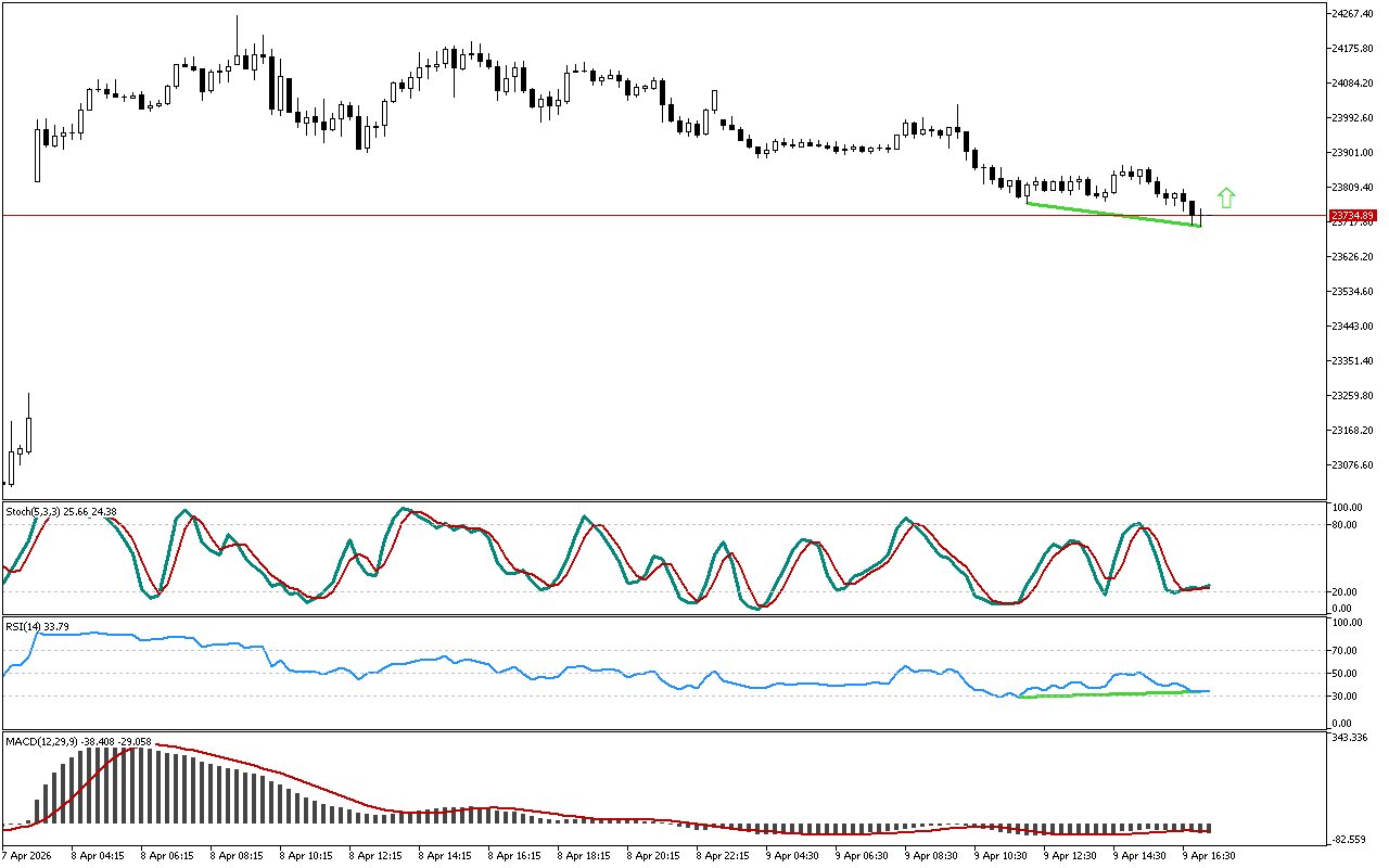 El oscilador RSI detecta una discrepancia. El precio no logró alcanzar un nuevo pico, mientras que el indicador RSI subió por encima del máximo intradiario anterior, lo que indica un posible cambio en la dinámica del movimiento del precio.