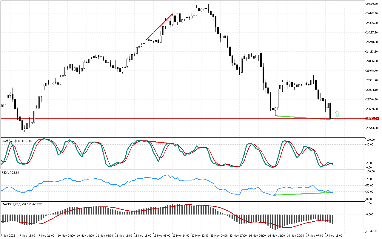 DAX 40 H1: Die Divergenz beim RSI verstärkt das zuvor empfangene Abwärtssignal vom Stochastic