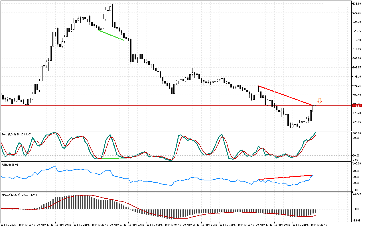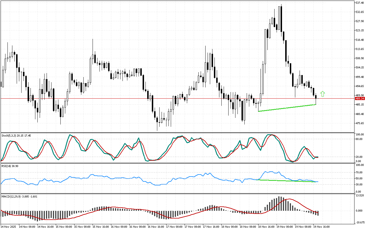 The price failed to reach a new low, while the RSI indicator shows an upward trend. The formed reverse divergence…