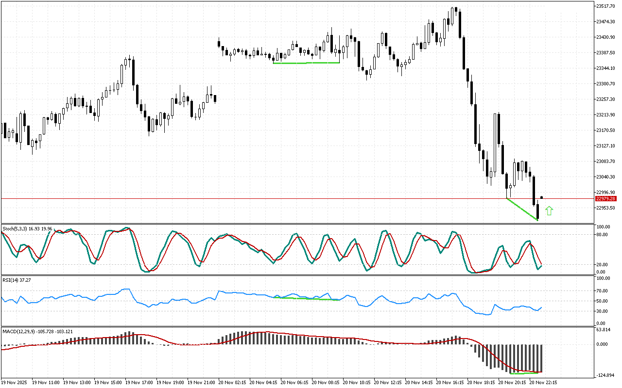 DAX 40 M15: Divergence signal is received from the Stochastic